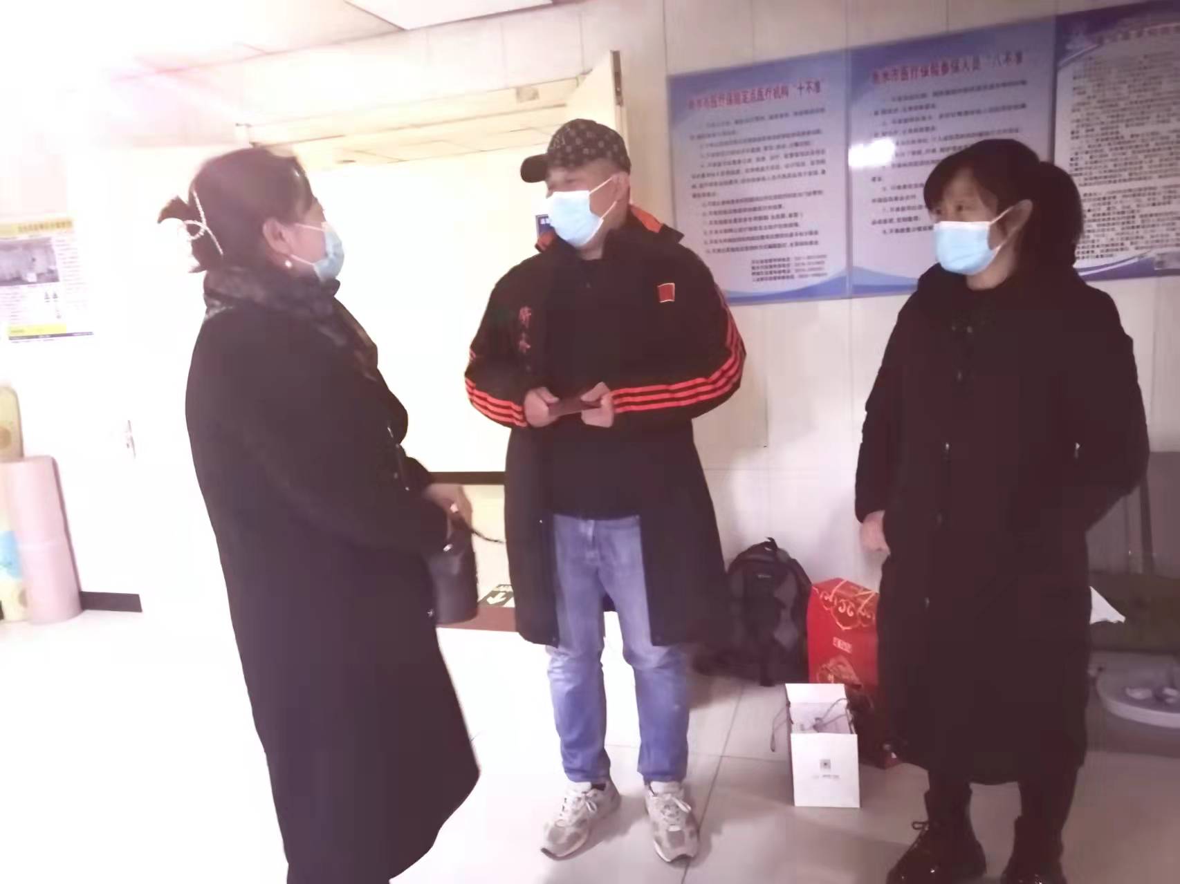 2022年1月6日公司委派擇立集團人力行政部經(jīng)理徐麗麗和擇立商貿(mào)公司副總經(jīng)理郭麗芳前往河北衡水第四人民醫(yī)院看望張輝家屬。