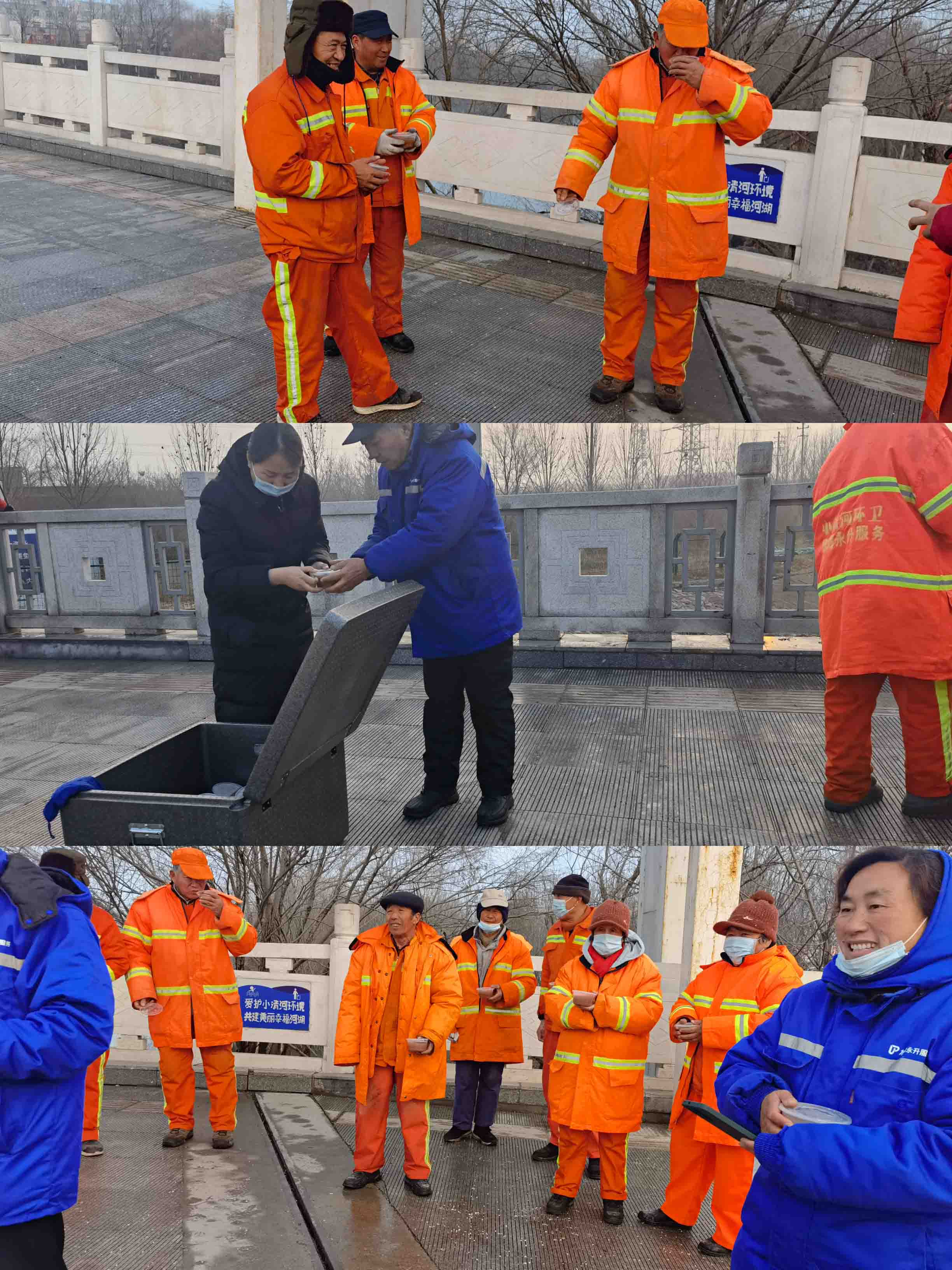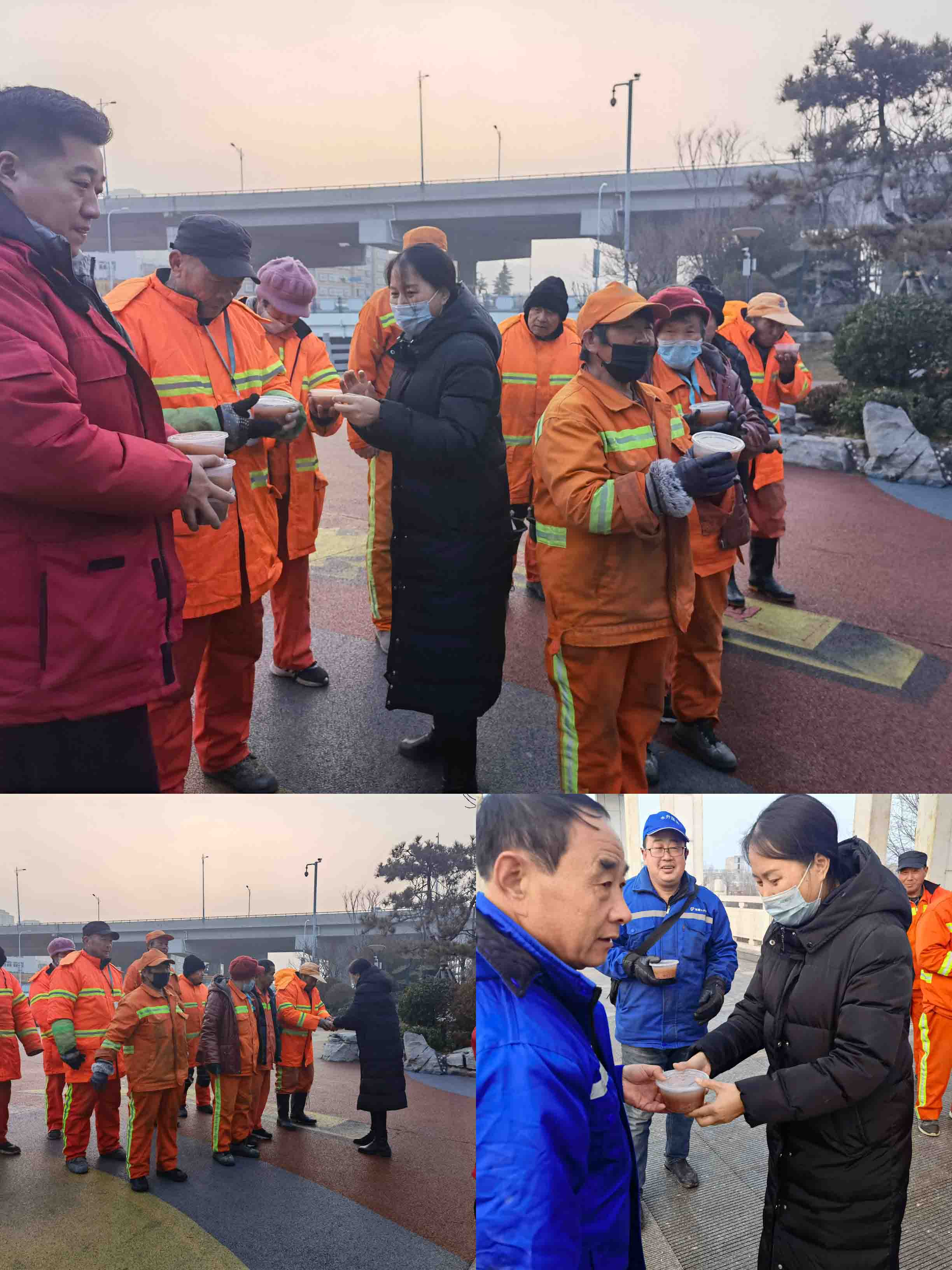 還開展了臘八節(jié)“慰問環(huán)衛(wèi)工人活動(dòng)”,為了感謝環(huán)衛(wèi)工人們?yōu)楦蓛粽麧嵉氖腥菔忻哺冻龅男燎趧趧?dòng)。城市優(yōu)美的環(huán)境離不開環(huán)衛(wèi)工人的辛苦付出,我們要用力所能及的行動(dòng)給予他們愛護(hù)和支持。” 環(huán)衛(wèi)工人是我們的“城市美容師”,為我們的美好城市環(huán)境做出了貢獻(xiàn)。