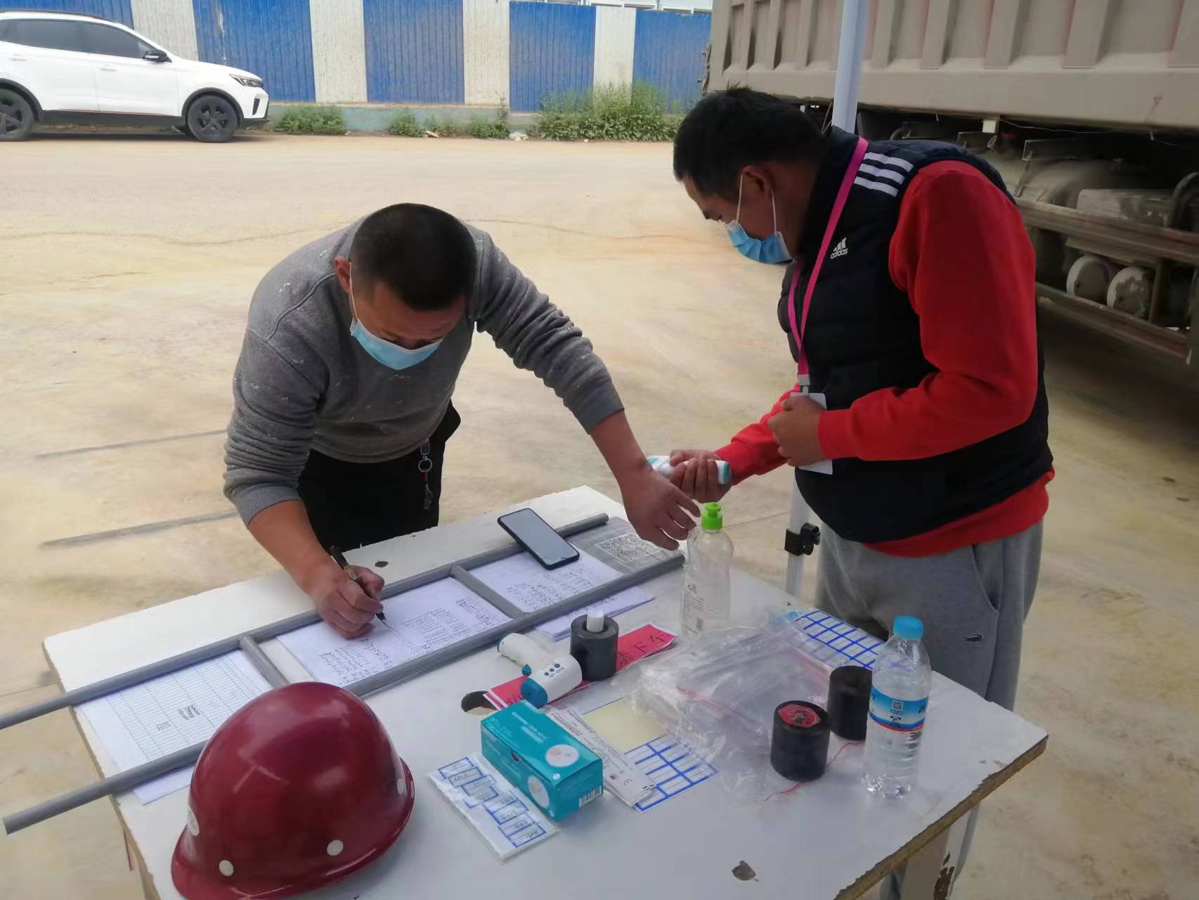 嚴格落實疫情防控措施。各項目部配備口罩、84消毒液、消毒酒精、PVC手套、測溫槍等防疫用品,提供防疫安全物資保障。施工現(xiàn)場建立人員健康監(jiān)測臺賬,每日早晚進行2次體溫檢測,詢問了解健康狀況,逐一做好記錄。施工現(xiàn)場、生活區(qū)嚴格按照規(guī)定,落實每日不少于2次通風消毒要求,確保環(huán)境衛(wèi)生。實行分餐和錯時用餐,保持就餐人員間距,避免面對面就餐。分散開展工地例會、班前教育、技術交底等活動。
