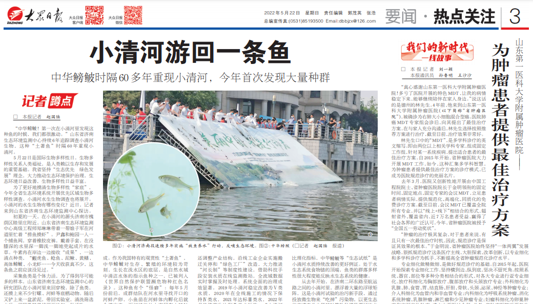 5月20日,山東省政府新聞辦召開新聞發(fā)布會(huì),濟(jì)南市生態(tài)環(huán)境局黨組書記、局長(zhǎng)肖紅介紹,小清河濟(jì)南段發(fā)現(xiàn)了大量中華鳑鲏種群。央視網(wǎng)、中國日?qǐng)?bào)、大眾日?qǐng)?bào)、閃電新聞、齊魯晚報(bào)、濟(jì)南時(shí)報(bào)等新聞媒體紛紛報(bào)道。